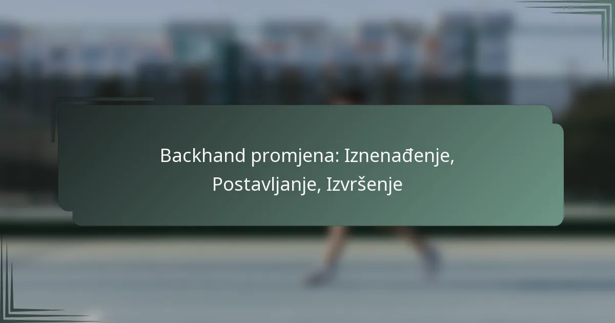 Backhand promjena je obmanjujući udarac koji se prvenstveno koristi u sportovima s reketa, osmišljen kako bi iznenadio protivnike mijenjanjem brzine i pozicije lopte. Za razliku od tradicionalnih udaraca, ova tehnika naglašava iznenadnu promjenu tempa, što otežava protivnicima da predviđaju udarac.
